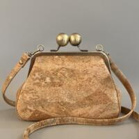 Ethel, a bespoke custom-designed kisslock saddlebag, is sure to add a delightful touch of vintage flair to any outfit. The uniquely beautiful look of the cork leather lends itself to the vintage vibe of this one-of-a-kind bag. Ethel boasts an oversized antique brushed bronze kisslock closure, topstitching details along the rounded gusset, an interior slip pocket and a crossbody strap. Each piece is carefully crafted by hand in my home studio, ensuring a unique and individual touch.
