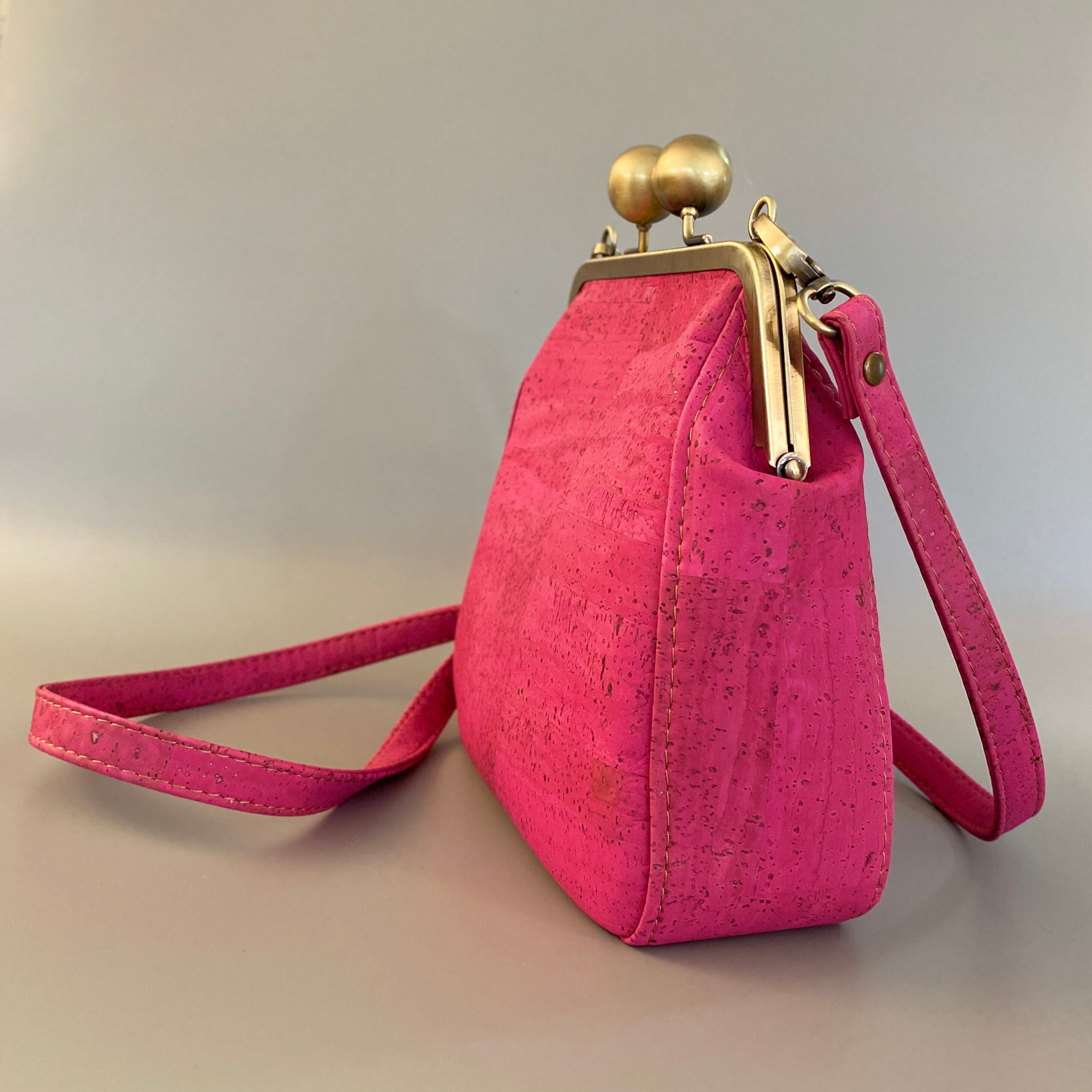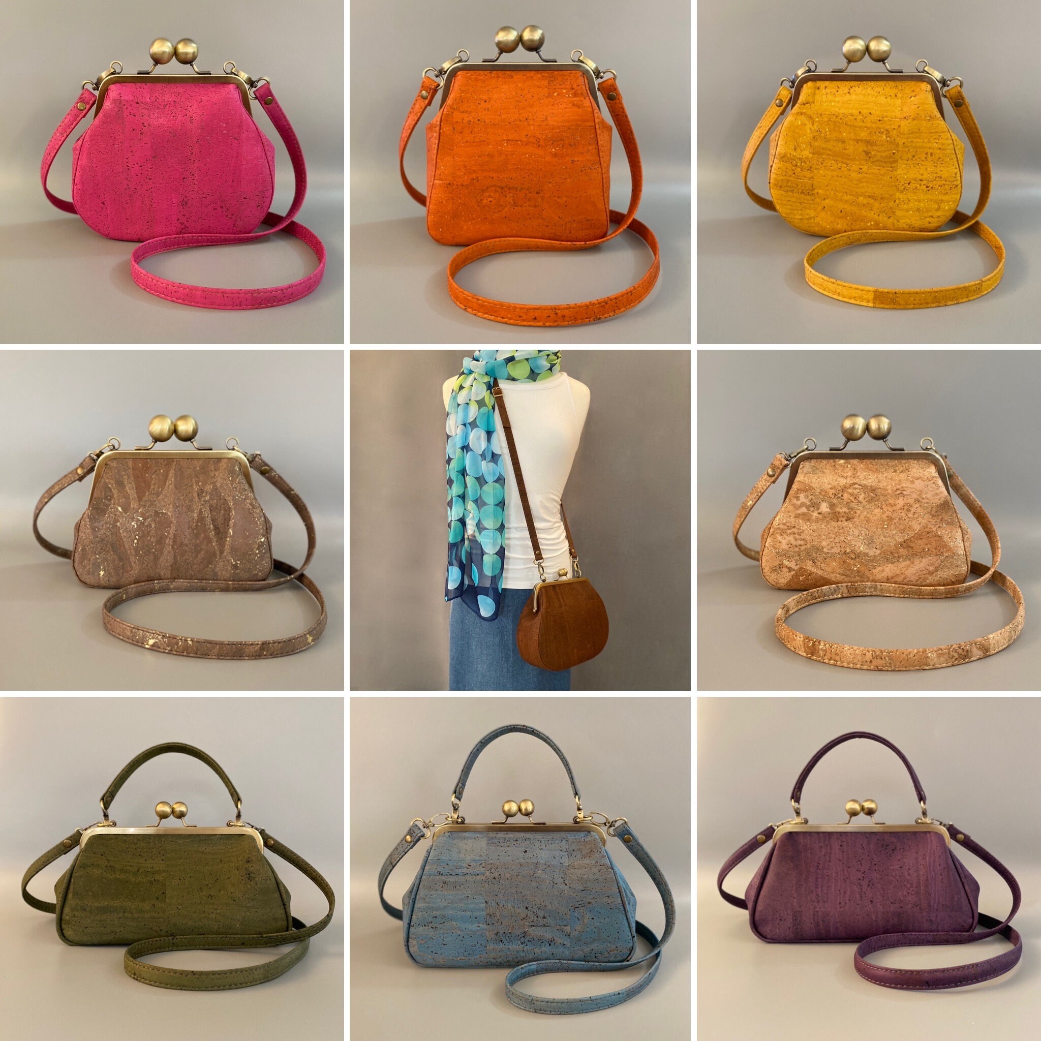 Doris is a sure way to add a touch of vintage charm to any outfit! This modern twist on a timeless classic is made with cork leather that has a unique appearance lending itself to the vintage vibe. Doris showcases an oversized antique brushed bronze kisslock closure, topstitching details along the gusset, a crossbody strap, and an interior slip pocket, making it both practical and stylish. Each piece is individually crafted by hand in my home studio, giving you a truly one-of-a-kind accessory that's sure to turn heads!