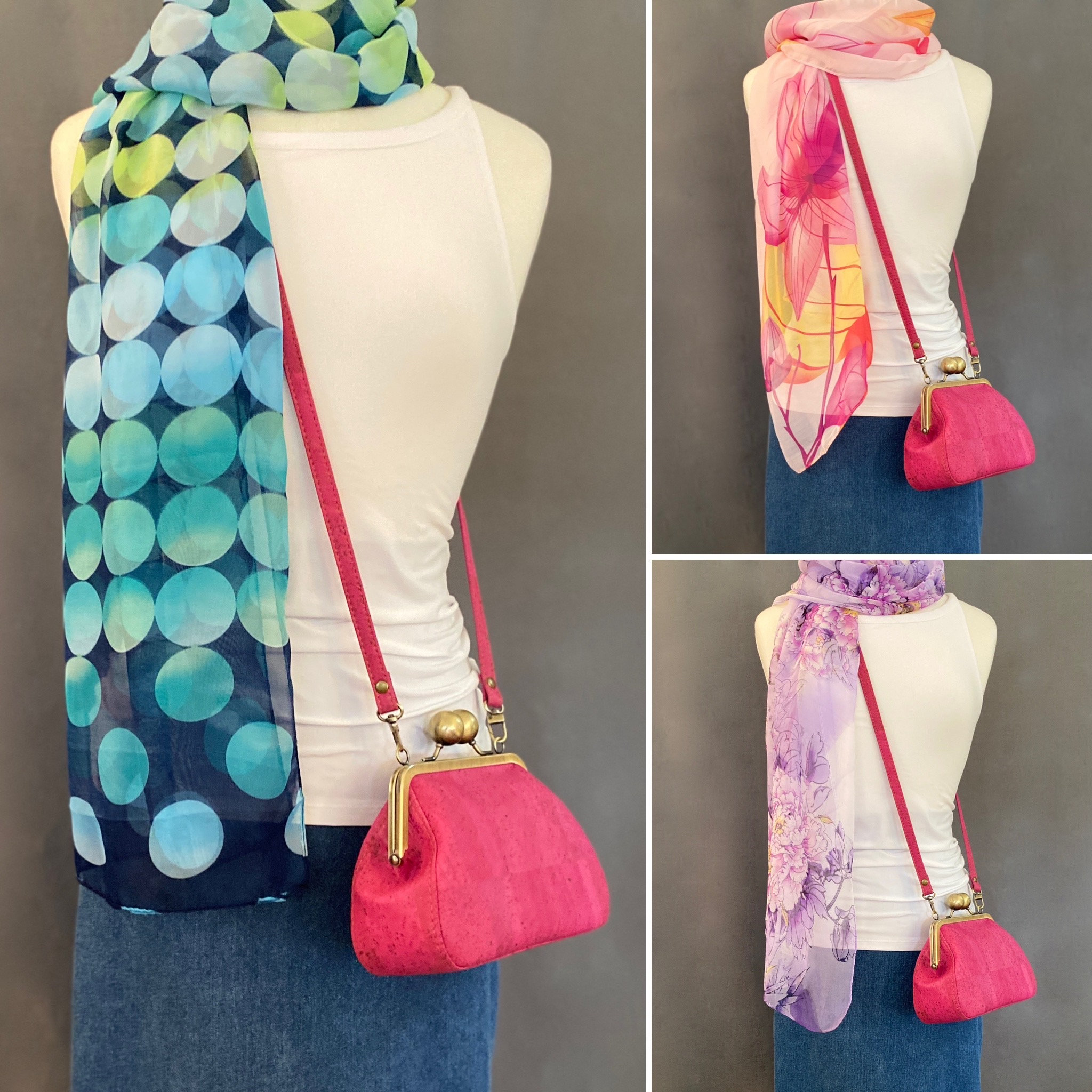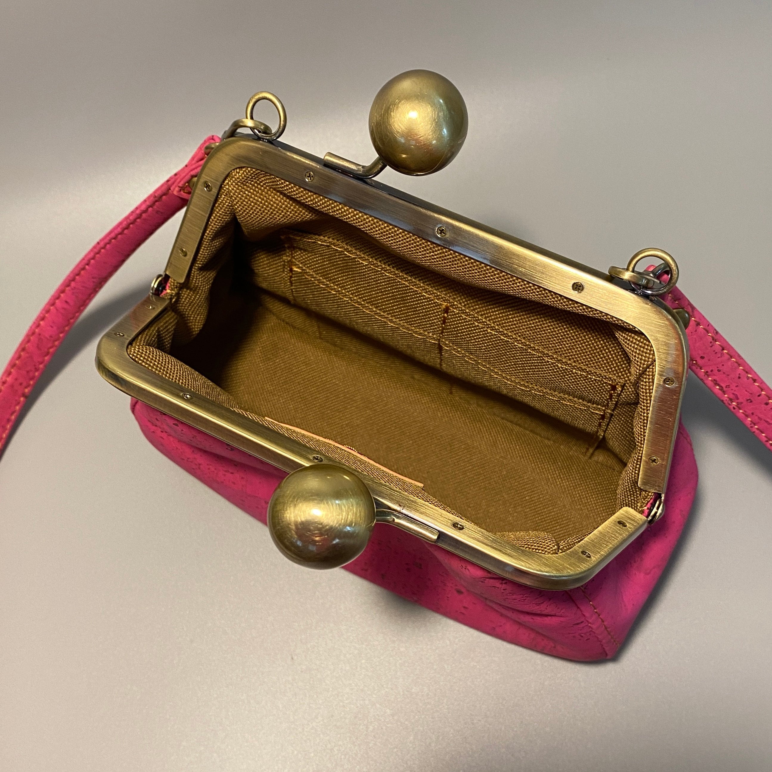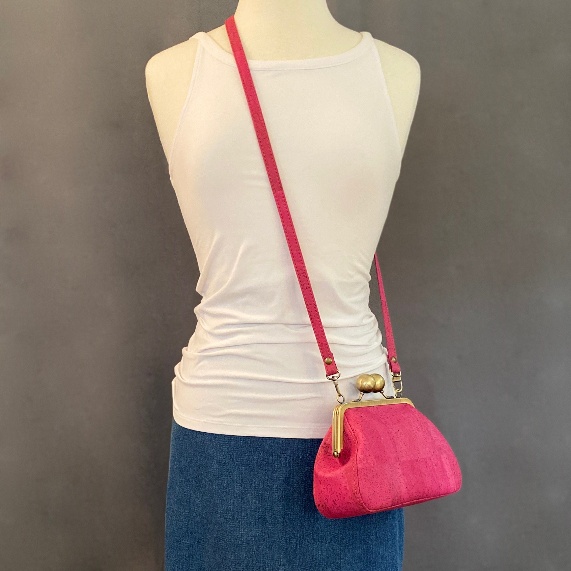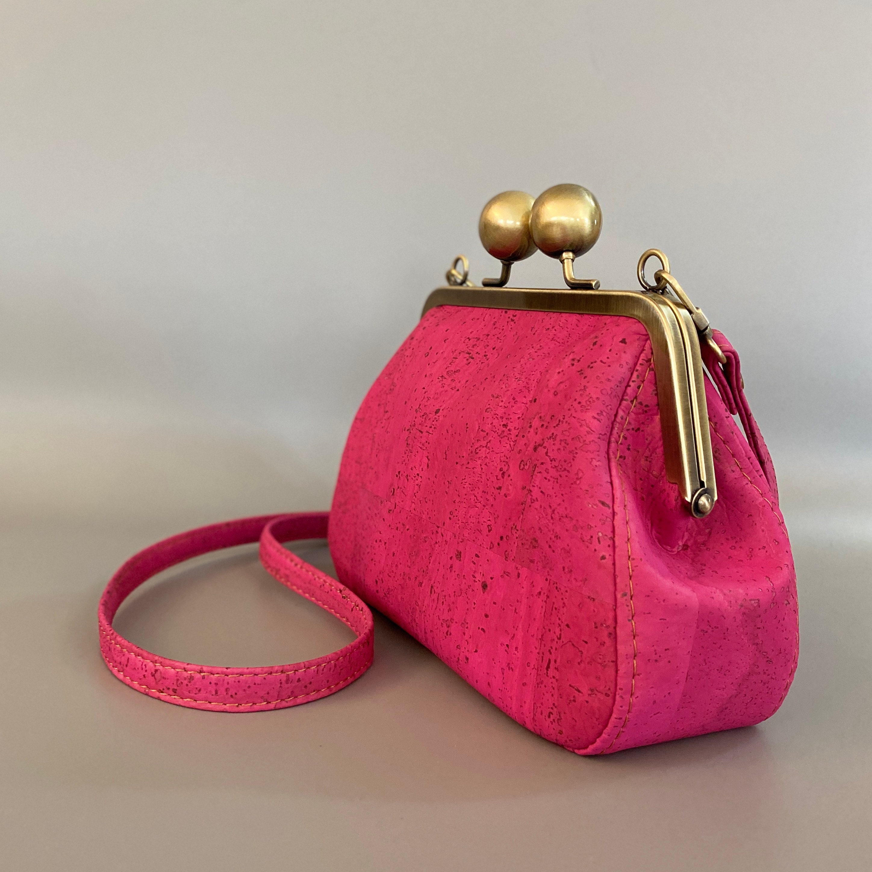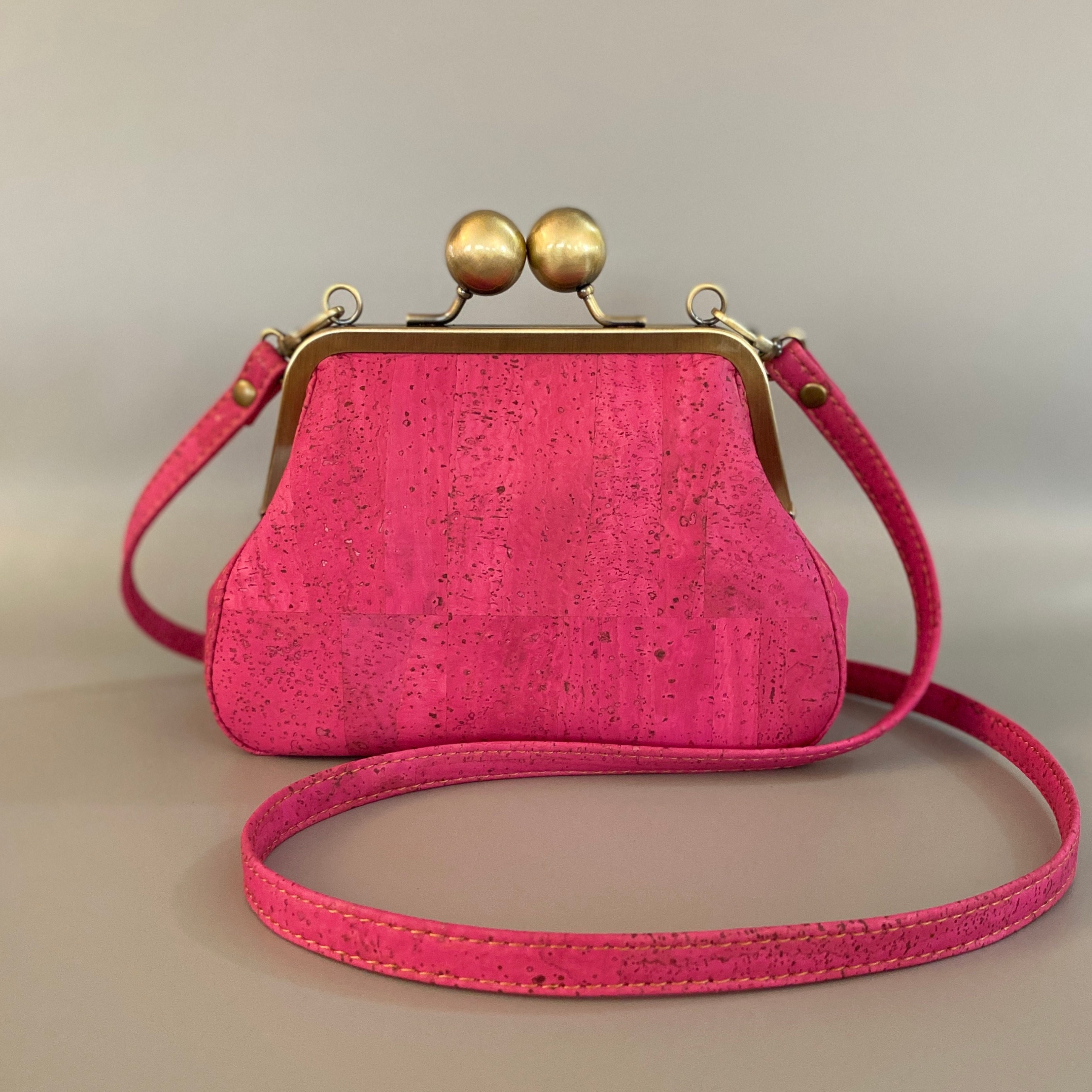 Beatrice proves you can make a big statement with a small bag. Made with beautifully unique cork leather, this bag exudes a vintage vibe that's perfect for any occasion. This adorable little bag features an oversized antique brushed bronze kisslock closure, topstitching details along the gusset, crossbody strap and multiple card slots for your ID, cards and cash. With no need for a wallet, there's more room for your essentials making this bag both functional and stylish. Best of all, each bag is individually crafted by hand in my home studio, ensuring that you'll be getting a truly one-of-a-kind piece made with the utmost care and attention to detail.